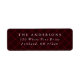 Rústicas etiquetas de dirección de vacaciones de vacaciones de enlucido dorado con su nombre y dirección con letras blancas en un fondo de manto pintado de color burdeos. Las etiquetas de dirección de devolución de plaid se coordinan con nuestra colección de vacaciones de escobillada.