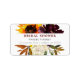 Una hermosa disposición de flores de otoño enmarca la información de su dirección de devolución. "Brides Shower" está escrito en una fuente clásica de color rojo borgoña. Su nombre en la dirección está en un suave gris paloma. Las flores de otoño incluyen un girasol de color amarillo dorado, una rosa roja borgoña profunda y una hortensia blanca. Esta etiqueta de dirección de devolución es parte de la colección Girasol y Borgoña que contiene plantillas de papelería que puede utilizar para crear un conjunto único de "save the date" que sus invitados seguramente notarán.