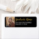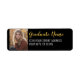 Simple etiqueta de dirección de retorno de Black and Gold con el nombre y lugar del graduado para añadir una foto. Esto se puede usar para cualquier graduado o reunión: escuela secundaria, universidad, posgrado, enfermería, escuela de medicina o incluso escuela de comercio.