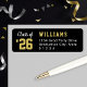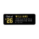 La etiqueta de dirección de devolución de graduación presenta texto deportivo del año de la clase y texto personalizado que se puede personalizar con un apellido y una dirección de devolución. El color de fondo negro y los colores del texto dorado y blanco se pueden personalizar para coordinar con cualquier color de la escuela.