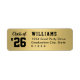 Personalice la etiqueta de dirección para la promoción de 2026 con un moderno '26' de estilo universitario y el apellido de la familia en negrita. El diseño cuenta con un fondo dorado con esquinas redondeadas para un aspecto limpio y elevado. Perfecto para invitaciones a fiestas de graduación, anuncios, notas de agradecimiento y sobres postales.