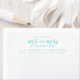 Moda, moderna y sencilla etiqueta de la dirección de retorno boda con el texto el futuro Sr. y la Sra. en caligrafía de escritura manuscrita azul turquesa elegante. Simplemente agrega tu nombre y dirección. Diseñado exclusivamente para usted por Happy Dolphin Studio. Si necesita ayuda o productos coincidentes, póngase en contacto con nosotros en happydolphinstudio@outlook.com. ¡Estamos encantados de ayudarle a hacer de su boda el día más hermoso!