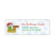 Esta etiqueta de la dirección de retorno de la festividad tiene una imagen de un pequeño elfo blanco con barba dentro de un patín verde con forma de cordón. El gnome tiene una cuerda de luces de Navidad y un cartel de madera al lado del patinaje señala el camino a Santa. Tu texto está en rojo y verde en el lado derecho. La imagen y el texto se colocan en un sutil fondo azul de copo de nieve. ¡Qué lindo!