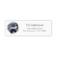 Etiqueta de dirección de retorno con temática invernal de bonito. Dentro de un círculo de color gris oscuro se encuentra la silueta de una liebre con la imagen de un bosque detrás. Personalizar fácilmente la tipografía gris oscuro con tu nombre y dirección.