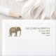 Etiqueta sencilla, moderna, elegante, blanca de retorno con monograma y elefante dorado, símbolo de: amor, fertilidad y buena suerte.