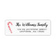 Estas etiquetas simples y dulces de la dirección de devolución de caña de caramelo añadirán un toque personalizado a sus tarjetas de Navidad este año.