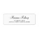 Etiquetas modernas de direcciones de retorno con un diseño sencillo con el nombre de su negocio en un elegante tipo de letra en negro y dos líneas de texto para su dirección de retorno en un tipo de letra sans serif, sobre un fondo blanco. Estas etiquetas de dirección de retorno minimalistas y de moda son una excelente manera de añadir un toque profesional a sus sobres.