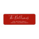 Etiquetas modernas de direcciones de retorno con un diseño sencillo con tu nombre en un tipo de letra manuscrita de gran formato en blanco sobre un fondo rojo. El elegante tipo de letra de su nombre le da a estas etiquetas de dirección de retorno minimalistas un toque de moda.