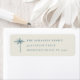 Elegantes rótulos de dirección costera con una majestuosa palmera de coco de color azul verde azulado polvoriento sobre un cálido fondo de marfil crema. Personalice con su nombre y dirección en letras de bloque clásicas.