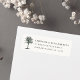 Las etiquetas de la dirección de retorno de la moda de la isla, en blanco y negro más pálido, incluyen su nombre(s) y dirección de retorno en letras grises y ricas de carbón vegetal flanqueadas por un ilustracion de palmera de estilo vintage grabado para un elegante estilo tropical.
