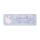 Envíe sus invitaciones a la ducha de bebé con estas etiquetas de dirección de retorno de la princesa de cisne morada de bonito. Estas etiquetas de dirección son personalizables y le permiten introducir su propio nombre y dirección. Esta etiqueta presenta un encaje blanco suave que domina un bonito fondo morado perwinkle y un cisne dibujado a mano con una corona.