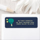Muestra tu amor por padel con cada pedazo de correo que envías. Esta etiqueta de dirección de retorno se ilustra con una raqueta de tenis de padel y pelotas. La raqueta en verde azulado y crema está colocada sobre un fondo azul marino.