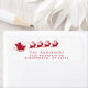 Etiqueta de dirección de retorno divertida para la temporada de vacaciones de los Navidades con una silueta roja de renos que vuelan en trineo de Santa por aire, y tu nombre y dirección familiar en una simple tipografía roja moderna.