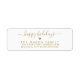 Elegante estilo moderno dorado y blanco de mano marca nombre familiar feliz vacaciones Regreso de etiquetas de direcciones. Presentando un guión de caligrafía con letras a mano con letras de cruz-cruz con las palabras "vacaciones felices" y un poco de amor por el corazón. Ideal para las vacaciones de invierno, fácil de personalizar con tus nombres y la información de la dirección de retorno.