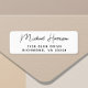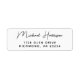 Etiqueta de dirección blanca con tu nombre en un guión moderno y elegante para tu correspondencia personal, de negocios o de eventos especiales.