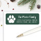 Las etiquetas de las direcciones vacacionales para los amantes de las mascotas cuentan con una huella de pata de mascota blanco con dirección blanca moderna y fondo de caza/verde pino. El color de fondo se puede personalizar para coordinar con el correo.