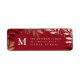 Una elegante etiqueta de dirección de vacaciones con ramas de pino dibujadas a mano en una paleta de colores de oro festivo y Navidades rojos diseñada por Stacey Meacham.