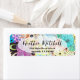 Esta etiqueta de dirección de retorno de personalizable es una pieza vibrante y artística, adornada con un diseño intrincado y colorido. El fondo es una bonita mezcla de motivos florales y geométricos abstractos a mano, con tonos azules, rosas, amarillos y verdes que se mezclan armoniosamente. El nombre y la dirección del remitente se escriben con elegancia en letra negra en el centro, lo que ofrece un sorprendente contraste con el animado telón de fondo. El estilo general de la etiqueta es artístico y colorido, lo que la convierte en una pieza destacada para cualquier correspondencia.