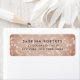 Las etiquetas con dirección de retorno elegantes y con burbujas presentan un fondo de luces de bokeh en cobre color rosa de moda para un aspecto de oro subió. Personalice con su dirección de retorno en sans serif modernos grabando carbón vegetal fuera de negro.