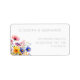 Este elegante rótulo de dirección refleja la esencia de la belleza natural, con una deliciosa colección de flores silvestres coloridas adornando la esquina inferior izquierda, complementada con los nombres de la pareja y la dirección de retorno en un refinado tipo de letra plateada, añadiendo un toque de sofisticación al diseño general. Los detalles intrincados de las flores silvestres crean un toque encantador y personalizado, lo que lo convierte en el complemento perfecto para cualquier invitación o invitación nupcial. Las vibrantes flores silvestres evocan un sentido de alegría y celebración, marcando el tono para una ocasión memorable.