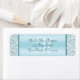 El fondo del degradado metálico azul está bordeado a cada lado por un damasco purpurina en estas etiquetas de retorno boda de moda. El nombre y la dirección se escriben en un tipo de letra de guión elegante y limpio. *Si quieres este diseño en más productos o necesitas ajustes de diseño, por favor contacta conmigo a través de Zazzle. **No hay tinta metálica o purpurina real en este artículo. Los detalles metálicos y purpurinas son simulados.
