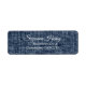Elegante dirección de retorno etiqueta la tipografía de _script con un fondo de denim azul de estilo grunge. Sólo tienes que añadir tu información y tener una hermosa manera de dirigir todas tus cartas y sobres. Etiquetas modernas de direcciones de retorno.