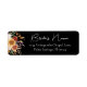 Etiquetas de dirección de devolución de invitación de boda de ducha floral de otoño negro.