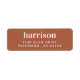 Etiqueta de la dirección de retorno de terracota con el nombre de su familia en negrita con letras blancas modernas y minimalistas.