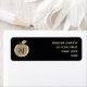 Etiqueta de dirección de devolución de lujo de manzana de hoja de oro y negro. Sencillo, moderno, lujoso, único.