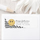 ¡Un chico genial se está volviendo! Celebra el gran día de tu niñito con nuestras coloridas etiquetas retro a cuadros de feliz cumpleaños, con damas de grises onduladas y una cara feliz totalmente estelar.