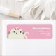 Etiqueta de dirección de devolución rosa con gato kawaii de dibujos animados, femenino y lindo.