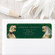 Divertido Boda de dinosaurios verde oscuro Retorno Etiqueta de dirección T-Rex Bride & Groom con vegetación eucalíptica botánica Añada un toque de encanto prehistórico a su correo boda con esta divertida etiqueta de dirección con temática de dinosaurio, que incluye un ilustracion acuarela de una novia y un novio T-Rex rodeados de un suave follaje eucalipto, vegetación botánica acuática. Una forma perfecta de unir tu suite boda de temática Jurásica, esta etiqueta aporta personalidad, diversión y elegancia a tus sobres. Diseñado con una elegante mezcla de tipografía moderna y elegante, esta etiqueta incluye plantillas fáciles de personalizar para sus nombres y dirección de retorno ideal para invitaciones a bodas, invitaciones a cenas de ensayo, tarjetas de agradecimiento o papelería de día. Ya sea que esté planeando un boda con temática de dino, una ceremonia nupcial al aire libre de destino, o simplemente los dinosaurios de amor, esta única etiqueta de dirección de retorno agrega un toque divertido y cohesivo a toda la correspondencia de sus bodas de dino. Con originales obras de arte de la artista Catherine Sweetman, esta etiqueta forma parte de una suite boda de dinosaurios totalmente concordante, que incluye invitaciones, carteles, números de mesa, menús y más.