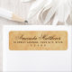 Elegantes etiquetas de dirección de devolución con su nombre en una fuente de caligrafía elegante y la dirección debajo en un fondo de papel vintage.