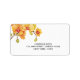 Elegante rama de orquídea amarilla de acuarela en una etiqueta de dirección de fondo blanco.