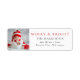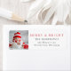 La etiqueta de dirección de devolución moderna presenta las palabras de tu foto favorita "Merry & Bright" en rojo festivo junto con el nombre de la familia y la dirección.