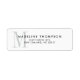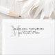 La etiqueta de la dirección presenta un diseño limpio y moderno con un fondo claro y un gran elemento decorativo de color gris "M" a la izquierda. El texto está centrado y utiliza un tipo de letra sans-serif elegante y en mayúsculas. La disposición es sencilla, elegante y equilibrada, con un aspecto profesional y refinado.