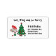 Etiqueta de la dirección del pickleball de los Navidades seleccionados con Santa jugando al pickleball en el fondo blanco. Come, bebe y sé alegre