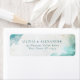 Estas modernas etiquetas de dirección de regreso de boda abstracta de playa presentan salpicaduras de tinta de alcohol dorado y azul turquesa para un sutil ambiente costero. Perfectas para bodas de verano en la costa y en destinos de playa tropical.