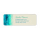 Hermoso mar pintado de azul verde con olas gráficas que brillan sobre la boda respuesta pegatina. Parte de una hermosa playa, de inspiración oceánica costera, contemporánea, de estilo boda, con un mar de acuarela a mano, único y estilizado, sobre un papel color arena. Perfecto para una boda moderna en la playa. Edite con su propio nombre y detalles de dirección. Único diseñado y pintado por Sarah Trett.
