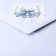 Un fondo azul claro decorado con un gran arco. Personalice y agregue su nombre y dirección. Cartas negras.