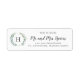Rústicas etiquetas de dirección de retorno de boda que incluyen su monograma dentro de una cortina de color verde junto con las palabras "El futuro señor y señora" y su nombre en una letra gruesa de escritura a mano y dos líneas de texto para su dirección de retorno, sobre un fondo blanco. Estas etiquetas botánicas de dirección de retorno de la vegetación son una excelente manera de añadir un toque elegante a sus sobres.