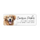 Etiqueta de dirección de retorno con una hermosa pintura acuarela de un recuperador de oro y tu nombre y dirección.