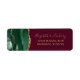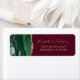 El borde izquierdo de esta elegante y moderna etiqueta de dirección de la invitación a la boda incluye un borde de batido de color verde esmeralda adornado con un falso purpurina de oro. El texto del personalizable combina guiones de escritura a mano de color dorado y fuentes de copperplate en un fondo de color burdeos.