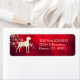 Esta distintiva etiqueta de dirección de retorno incluye una silueta dorada de la imagen de perro Vizsla frente a un rociado de copos de nieve dorados ornamentados. La imagen se coloca sobre un fondo rojo profundo degradado que parece casi resplandecer. El texto de su personalizado es en oro pálido a la derecha de la imagen. ¡Hermoso!