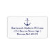 Etiquetas de la dirección de devolución de la pareja personalizado de boda elegante y moderna. Anclaje náutico azul marino y blanco