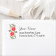 Etiqueta de dirección de retorno personalizado con escritura y letras estándar y arte vintage de margaritas y hojas curling en rojo y dorado, restaurado a partir de un manuscrito antiguo.
