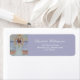 Hermosa Etiqueta de Dirección que puedes personalizar con tu nombre y dirección. Úsala en tus sobres para cumpleaños, aniversarios o cualquier celebración especial. Hermosa chica de Yoga en la playa con un traje blanco sentada en la arena dorada frente al océano y las olas con los brazos en oración sobre su cabeza