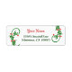 Etiquetas editables de direcciones de retorno con letras rojas para tu nombre, y letras verdes oscuras enmarcadas por guirnaldas de hueso