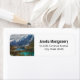 Etiquetas de direcciones con una hermosa fotografía natural. Con montañas alpinas cubiertas de nieve y tranquilos estanques escondidos en el valle de estas majestuosas montañas.