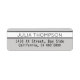 Etiqueta elegante de la dirección de retorno con su nombre escrito en una franja blanca sobre fondo gris pálido con dirección